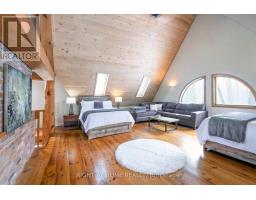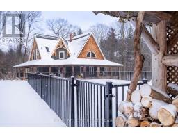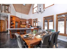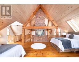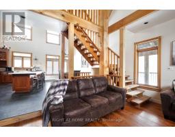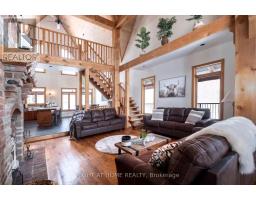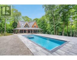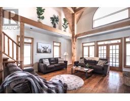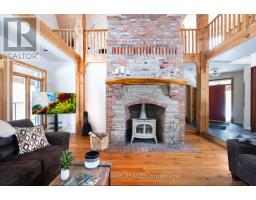 Welcome to this secluded custom Timberframe retreat, set on nearly 100 acres of pristine land surrounded by mature trees, farmland, and a tranquil pond. This architectural gem showcases soaring 28 ceilings, a dramatic floor-to-ceiling fireplace, and an open-concept layout filled with natural light. The main floor offers a spacious bedroom and mudroom with shower, while the loft-style primary suite boasts an 18 ceiling and skylights. A 1,300 sq. ft. wraparound deck extends the living space outdoors, leading to a true backyard oasis complete with a newer inground pool (2021) and hot tub.With 3,328 finished square feet, the fully finished walkout basement provides excellent in-law suite potential, featuring two additional bedrooms, a large recreation room, office, bathroom, and the option for a second kitchen. This property offers endless lifestyle and investment opportunities whether as a private family retreat, a short-term rental destination, or future development potential. Just minutes from Wasaga Beach and a short drive to Barrie and Collingwood, this is a rare chance to live in your own private paradise while securing an exceptional long-term investment. (id:50886)