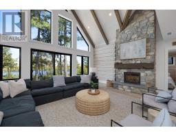 This approximately 4,000 square foot, 5-bedroom, brand new modern log home on sought-after Lake Muskoka is a rare opportunity just 5 km from downtown Port Carling, the hub of Muskoka. Tucked away on a quiet dead-end road, the property spans 2.5 acres with 205 ft of straight-line, pristine, eastern-facing shoreline and over 25 ft of water depth off the private dock ideal for swimming and boating. This naturally treed lot offers the ultimate privacy and a true Muskoka feel.The home comfortably sleeps 15 and includes a 900 sq ft bonus space above the heated, oversized 30 x 30 garage with 14 ft ceilings, perfect for additional living or recreation. The large driveway can easily accommodate 15+ vehicles, making it ideal for hosting friends and family. Enjoy lake views from the glass-railed front deck, the 4-season Muskoka room, or while relaxing in the hot tub. The fire pit area by the water adds to the outdoor charm.Inside, the open-concept solid wood kitchen crafted by Perola Kitchens offers exceptional space for entertaining. Vaulted 30 ft wood-beamed ceilings, a wood-burning Stuv fireplace, and floor-to-ceiling stone quarried from Manitoulin Island create a warm, luxurious atmosphere. The wall of windows offers breathtaking lake views and natural light throughout. The main floor primary suite features a spa-like ensuite, walk-in closet, and private walkout with lake views. Upstairs, 4 bedrooms and a full bath provide space for 13 guests. An enclosed loft adds versatility for games, media, or extra sleeping quarters. Additional features include a full-home generator, ICF foundation, drilled well, and hydronic heating throughout including the garage ensuring efficient, year-round comfort. This move-in ready custom home is a rare gem on Lake Muskoka perfect for those seeking luxury, comfort, and true waterfront living. (id:50886)