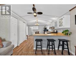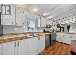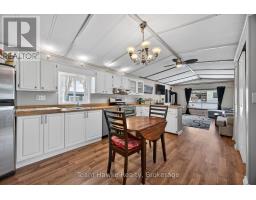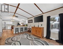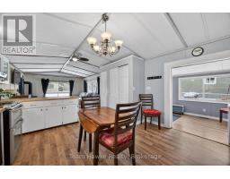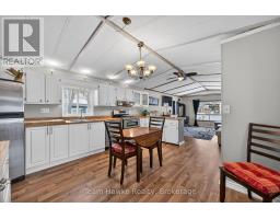 Discover easy living at Smith's Camp, a welcoming community tucked along the shores of Little Lake. This mobile home features a wide, open layout with a seamless flow through the living, kitchen, and dining areas. No narrow hallway feel. Two bedrooms, a generous 4-piece bath with in-suite laundry, and excellent outdoor space make this an ideal place to settle in. Enjoy morning coffee on the covered front porch, unwind on the covered back deck, and take advantage of several sheds for extra storage. Located minutes from amenities, waterfront recreation, and Highway 12. (Lot Fees $311.65 + Taxes $65.76) (id:50886)