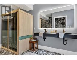 Located in the prestigious Deer Ridge community, this custom-built home stands apart for its thoughtful design, refined finishes, and award-winning features. Every detail from the materials selected to the layout of each space has been crafted with purpose. The main level features a chefs kitchen with dovetail soft-close cabinetry, quartz countertops and backsplash, a Wolf gas range, and a striking wrought iron hood. White oak ceiling beams add warmth, while a large island provides the perfect space for gathering. The kitchen flows into a dedicated dining space illuminated by oversized windows. A full-height custom stone fireplace anchors the great room, leading seamlessly into a cozy sunroom with a second fireplace and views of the backyard. Also on the main floor are a spacious laundry/mudroom, a private office, and a second bedroom. The primary suite is a private retreat with coffered ceilings, large windows, a custom walk-in closet, and an elegant ensuite featuring a tiled walk-in shower, soaker tub, and double vanity with gold accents. The basement is built for both wellness and entertainment, featuring two more bedrooms, a bright indoor pool, fully equipped fitness room, and a luxurious bathroom recognized with an NKBA Ontario Honourable Mention. Entertain in style in the custom Scotch Room and award-winning wet bar featuring double fridges, glass-front cabinetry, and interior lighting. This bar earned 1st place by NKBA Ontario awards and 2nd nationally by the Decorators & Designers Association of Canada. A built-in entertainment unit with Sonos sound completes the space. This is a home where luxury meets liveability where every room supports the way you want to live, without compromise. Don't miss this opportunity! Book a private showing today! (id:50886)