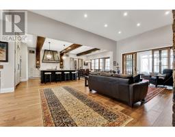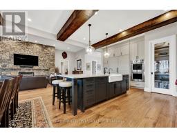 Located in the prestigious Deer Ridge community, this custom-built home stands apart for its thoughtful design, refined finishes, and award-winning features. Every detail from the materials selected to the layout of each space has been crafted with purpose. The main level features a chefs kitchen with dovetail soft-close cabinetry, quartz countertops and backsplash, a Wolf gas range, and a striking wrought iron hood. White oak ceiling beams add warmth, while a large island provides the perfect space for gathering. The kitchen flows into a dedicated dining space illuminated by oversized windows. A full-height custom stone fireplace anchors the great room, leading seamlessly into a cozy sunroom with a second fireplace and views of the backyard. Also on the main floor are a spacious laundry/mudroom, a private office, and a second bedroom. The primary suite is a private retreat with coffered ceilings, large windows, a custom walk-in closet, and an elegant ensuite featuring a tiled walk-in shower, soaker tub, and double vanity with gold accents. The basement is built for both wellness and entertainment, featuring two more bedrooms, a bright indoor pool, fully equipped fitness room, and a luxurious bathroom recognized with an NKBA Ontario Honourable Mention. Entertain in style in the custom Scotch Room and award-winning wet bar featuring double fridges, glass-front cabinetry, and interior lighting. This bar earned 1st place by NKBA Ontario awards and 2nd nationally by the Decorators & Designers Association of Canada. A built-in entertainment unit with Sonos sound completes the space. This is a home where luxury meets liveability where every room supports the way you want to live, without compromise. Don't miss this opportunity! Book a private showing today! (id:50886)