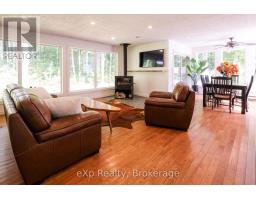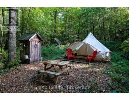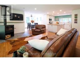 Situated on 20 acres of soaring maple forest. With many species of healthy, native flowers and plants, this charming home, located along a peaceful rural road, blends modern convenience with the natural tranquility of forest living and offers privacy. The main floor features an open-concept kitchen and living area, with the dining space framed by a wall of windows that captures the beauty of every season. You'll also find a full 4-piece bath, three bedrooms, and a cosy den. The primary suite is a true retreat, filled with natural light, abundant closet space, and plenty of room for a king-sized bed. Step outside to an expansive deck and inviting pool and hot tub, perfect for entertaining or relaxing. Gardeners will love the thriving vegetable beds, while hobby farmers will appreciate the fenced chicken coup/greenhouse, sheds and lean-to. A detached 1.5-car garage and additional garden sheds round out this property's practicality. Just 10 minutes from Wiarton and 25 from Owen Sound, this rural retreat offers a world of wonder for nature lovers and families alike. (id:50886)