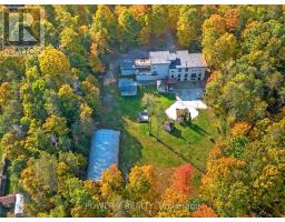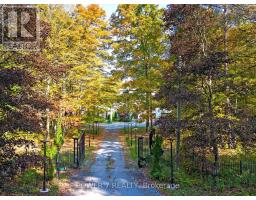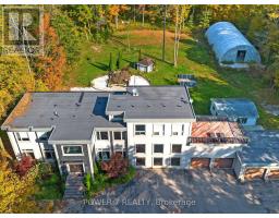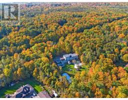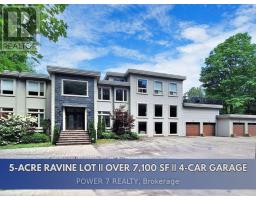 A Golden Opportunity Knocks! Welcome to this Exquisite Contemporary Custom Estate Home, privately nestled on just under 5 acres with 319 of frontage, surrounded by mature trees and backing onto the Serene York Regional Forest. Offering over 7,000 sq. ft. of luxury living plus an additional 2,000+ sq. ft. finished walk-out basement, this home delivers an unparalleled lifestyle in a tranquil forested setting. The striking exterior boasts a stucco & stone façade, 4-car garage, electronic gate, and a circular driveway. Inside, you'll find soaring ceilings on all levels, hardwood floors, waffle ceilings, floating hardwood stairs with wrought iron pickets, and floor-to-ceiling picture windows that flood the living and dining rooms with natural light. The gourmet chefs kitchen is a showpiece with a custom waterfall centre island, upgraded cabinetry, and premium stainless steel appliances perfect for hosting family gatherings and grand celebrations. All 5 oversized bedrooms feature private renovated ensuites. The primary suite offers a boutique-inspired walk-in closet with centre island, and a spa-like 5-pc ensuite with freestanding tub, glass shower, and dual vanities. The professionally finished walk-out basement is ideal for entertaining, complete with floor-to-ceiling windows, a custom-built wet bar, expansive recreation space, and 2 guest suites. Outdoors, enjoy your private garden oasis on a 677 deep lot, complete with a workshop and garden shed. This is truly a rare, one-of-a-kind estate that seamlessly blends modern elegance with peaceful natural surroundings. Don't miss your chance to own this extraordinary gem! Note: The subject is virtually staged. (id:50886)