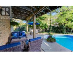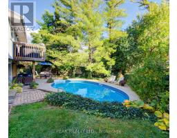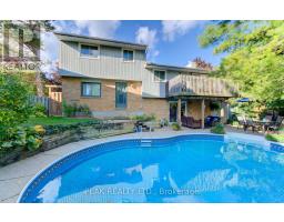 Pristine 4 level side split in exclusive and highly desired enclave of homes! This 3 bedroom gem has been meticulously maintained and loved by the same family for over 40 years. Large main floor foyer with travertine floors has access to garage and conveniently located laundry room. The main level is open concept, carpet free and features a tastefully updated kitchen with centre island, granite counters, s/s appliances, opening onto dining room with walk out to deck perfect for bbq, overlooking treed backyard. Sprawling living room with picture window and treed streetscape view rounds out the main floor. The third level features 3 good sized bedrooms and a full bathroom. Fully finished basement has additional 3 piece bathroom and walk out to backyard oasis with heated inground pool and lush gardens! Year round privacy with evergreen trees. Double wide driveway plus single car garage allows for plenty of parking. Updates include: Hot water heater (rental) 2024, A/C 2022, Furnace 2017, Upstairs front bedroom windows and eavestroughs 2019, pool pump 2024, Living room window, front door and shutters in 2023, pool shed roof 2025. (id:50886)