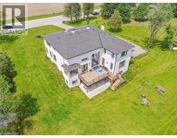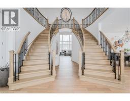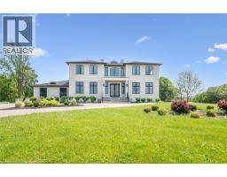 Nestled on 2 acres of land, this grand and spacious home offers exceptional living space and unmatched luxury. Boasting 8,400 sq ft of finished living area, this property is located just a short drive from all amenities and Highway 401.The home greets you with impressive curb appeal, featuring a circular driveway and a 3-car garage. The grand double curved staircase sets the tone for the rest of the home. Featuring large principal rooms and expansive ceiling heights that provide an inviting and airy atmosphere flooded with natural light . The double-story great room opens to below, providing a dramatic focal point, and is perfect for gathering or simply relaxing. The gourmet kitchen is a chef’s dream, showcasing custom cabinetry, large island, quartz countertops, B/I appliances, and a cozy breakfast area with B/I bench seating. Custom built-in cabinets and bookshelves in the Den and Great Room, are complemented by cozy linear gas fireplaces that add warmth and sophistication to the space. The entire home features a carpet-free interior with clean, modern finishes throughout.The main floor is dedicated to convenience and comfort, with a spacious master suite complete with an ensuite bath and walk-in closet. In addition the home offers a formal living/dining area perfect for entertaining and a home office/den. On the upper level, you'll find a second primary bedroom with its own private ensuite and 2 additional bedrooms and ensuites . The oversized upper landing provides versatile space that can be used as a sitting area, kids’ lounge, or easily converted to a bedroom. A second-floor laundry room adds to the home's practicality.The fully finished lower level extends the home’s living space even further, with a walk-out to the rear patio and a separate entrance. It features an oversized rec room and games area with a wet bar, as well as a dedicated theatre room.Offering unparalleled space and functionality, designed for luxury living and effortless entertaining. (id:50886)