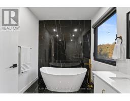 Located on a private half acre lot in one of Burlington's most desirable settings, this new custom modern estate offers nearly 6,000 SF of refined living space. Designed with bold architecture and contemporary finishes, the home reflects state-of-the-art features for todays discerning buyer. Inside, porcelain tile flooring flows across the main and lower levels, while glass-railed white oak staircases and engineered hardwood enrich the upper quarters. A gourmet kitchen with quartz countertops, premium appliances, a walk-in pantry, and an oversized centre island anchors the open-concept main floor, seamlessly connecting the dining, living, and family rooms. Oversized walk-outs extend to a private terrace and backyard oasis, perfect for summer entertaining or morning coffee. The upper level boasts a primary retreat with a spa-inspired 5-pc ensuite, walk-in closet, and balcony views. Each additional bedroom enjoys its own ensuite, creating private sanctuaries for family and guests. Bathrooms throughout are appointed with designer porcelain tile, custom vanities, and luxury fixtures. The fully finished lower level expands the lifestyle, offering a sprawling recreation room, additional bedroom, full bath, and cold storage, ideal for a home gym, theatre, or lounge. Built-in ceiling speakers, central vacuum, and oversized windows further enhance everyday living. Beyond the home itself, families will appreciate the lifestyle that comes with this location: weekend hikes at Mount Nemo Conservation Area just minutes away, golf outings at Burlington Springs, quick access to shops and dining along Guelph Line, and waterfront strolls or festivals at Spencer Smith Park. With top schools, medical services, and the Royal Botanical Gardens all nearby, convenience pairs effortlessly with serenity. (id:50886)