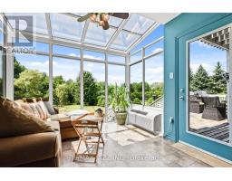 Fabulous Mitchell Corners beauty nestled on a maturely treed 3/4 acre lot in a demand community minutes from everything. This modern, open-concept designed home offers 2,882 sq ft above grade, plus a bright 4-season sunroom. Thoughtfully designed for accessible living, it includes a full elevator, ramps, electronic entry door, and a beautifully crafted barrier-free ensuite. Numerous updates throughout, including a 4-season sunroom (2009) overlooking the picturesque west-facing yard, shingles (2015), furnace and A/C (2020), HRV/HEPA system (2021), and a spectacular ensuite (2020) featuring a jet tub, curbless shower, and double vanity. The voluminous sunken living room features California shutters, hardwood floors, vaulted ceilings, and a gas fireplace, all overlooked by a spacious formal dining room with walkout to the sunroom. A convenient main floor office offers added functionality. The large kitchen and family room combination boasts a second fireplace, this one wood-burning, large island, eating area, and walkout to extensive decking and a 21 ft aboveground pool. A handy powder room and main floor laundry with direct garage access complete the main level. Upstairs, the primary suite boasts engineered hardwood, walkout to balcony, elevator access, a diva-worthy walk-in closet with a plethora of custom shelves and cabinets, and a 5-piece ensuite with skylight. Two additional bedrooms are serviced by an updated 4-piece bath. The full, unspoiled basement with 2-piece rough-in offers wonderful potential to tailor the space to your needs. Serene and idyllic, the backyard boasts mature trees, a solar-heated aboveground pool (10 years old), and a garden shed. Additional features include a spacious double garage and driveway parking for 12 cars. A truly special home, and one that meets the needs for accessibility, this one is a rare offering you won't want to miss! (id:50886)