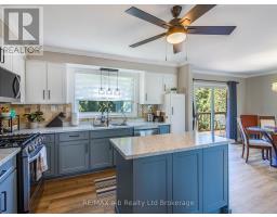 Room Enough for Everyone, this solid brick raised ranch offers the perfect blend of comfort, convenience, and versatility. Clean streamlined entrance welcomes you with new exterior steps, walkway and front porch. The foyer has upgraded stairs, railing and wainscotting(2023). The upper level has a primary bedroom that is large with its own newer stylishly designed ensuite and comes with a walk-in closet, 2 other bedrooms as well as an updated 4 piece bath, the first spare bedroom has a storage area just behind the hanging picture. The upper level is light, fresh and airy that comes complete with luxury plank flooring throughout (2024), as you move to the renovated kitchen you will appreciate the quality appliances, island for extra seating and prepping meals, shaker cabinets give you a ton of storage space and add a modern touch to this level. The living-room has a large picture window that lets in the natural light as well as the patio doors that lead you to the large cement deck that offers so much room to enjoy, whether hooking up your gas b.b.q. or fireplace entertaining is a breeze or simply taking in the views of your landscaped garden, it is such a relaxing spot or try the screened in gazebo. Separate 1+ bedroom self contained in-law suite with private entrance, private deck over looking the landscaped gardens, large windows, 4 piece bath, full kitchen, cozy living-room with a gas fireplace(2022) makes this space perfect for anyone. Large single garage(newer I-beam construction and hydro 2019) with space for a car, mower and garden supplies. Generous driveway with parking for up to 5 vehicles offers easy parking for guests or mutli-generational family. Whether you're hosting or enjoying peaceful evenings at home, this property delivers space, style, and functionality in one impressive package. Weeping bed 2019, Water Softener/furnace serviced in 2023, heat equal billing $97.00/month, hydro winter $90, summer $140 measurements done by I-guide (id:50886)