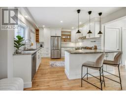 The holidays are just around the corner—make your dream of being ""Home for the Holidays"" a reality with this fully renovated, turnkey GEM in the heart of the admired Old Hospital Area! This warm and inviting 3-bedroom, 2-bath 1930s home has been professionally refurbished from top to bottom, showcasing a modern open-concept layout with clean lines, premium finishes, and thoughtful functionality for today’s family. From the moment you step onto the inviting new veranda, you’ll feel at home—perfect for après-snowshoe hot chocolate or watching the snow fall after an evening skate on nearby Ramsey. Inside, the bright, airy main floor welcomes you with hardwood floors, niche lighting, and large windows that fill the space with natural light. Gather around the cozy wood-burning fireplace with its beautiful granite surround or cook up family favorites in the stunning curated kitchen featuring gorgeous cabinetry, subway tile backsplash, granite countertops, high-end stainless appliances, open shelving, and a convenient breakfast bar w/ pendant lighting. The sunlit dining area opens through garden doors to a private backyard with a spacious new deck, mature trees, and plenty of room to entertain or unwind. A custom mudroom with built-in seating and storage keeps life organized, while a chic powder room completes the main level. Upstairs, a solid wood staircase leads to three generous bedrooms—each with double closets—plus a large linen closet and a spa-like bathroom with elegant double vanity. The finished lower level adds even more living space with a cozy family room, flex area ideal for a home office, laundry zone, and abundant storage. Every inch of this home has been meticulously updated; fresh sod, siding, windows, insulation, soundproofing, plumbing, electrical, HVAC, roof, flooring, solid-core doors, central vac, laundry chute, and solar panel setup. UNMATCHED VALUE in a sought-after neighborhood! Celebrate the season in style—your DREAM HOME is ready to welcome you! (id:50886)