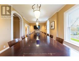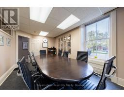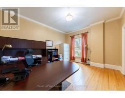Prominent Professional Office building on Woolwich Street just north of the Downtown core. This property has been meticulously maintained and updated inside and out with careful consideration for its' historical charm. Located on a half acre corner lot, there is plenty of room for expansion, additional parking and/or residential re-development. The zoning allows for a myriad of uses. The main level with a large reception area also houses several admin offices, a number of large private offices, kitchen, 3 washrooms and a board room. The second floor has a very large boardroom, more private offices, kitchenette and washroom. The second floor Boardroom is very impressive and capable of hosting large meetings. The existing parking lot can easily accommodate parking for 20 vehicles. The basement currently houses 500 sq ft of dry file storage as well as mechanicals. This is one of the most iconic office buildings on Guelph's Woolwich corridor, a well located blend of Commercial and Residential properties. (id:50886)