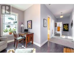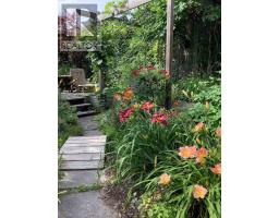 Charming East City Home with Flexible Living Options. This beautiful two-storey Century home is perfectly situated in Peterborough's desirable East City and just a short walk to shops, restaurants, parks, tennis courts, the Otonabee River & Little Lake. Full of charm and character, this home offers the flexibility to suit your lifestyle. Once used as a duplex with a separate entrance for the upper level and a side entrance to the main floor, the property has been reinstated into a spacious single-family home, but could easily be converted back with the existing hookups for a second kitchen on the upper level still in place, making this home an ideal setup for multigenerational living or an income opportunity. The main floor features a cozy living room and dining room with beautiful windows, a bright kitchen with a walkout to a covered patio, a family room with a gas fireplace, 2 skylights and wood beams, plus a 4 piece bathroom. If converting to a duplex, the family room could be used as a bedroom. Upstairs you'll find a large primary bedroom with a huge closet and beautiful windows, a 2nd bedroom with its own balcony, a 3 piece bathroom and a flex space that could be used as another bedroom, an office, or converted back to a kitchen. The home sits on a deep lot of almost 200 feet and is a gardener's dream with lovely perennials and lush greenery that provide a peaceful, picturesque setting that can be enjoyed from every angle of the property. There's also a calming water feature. And with no grass to cut, you can spend more time enjoying the beauty of your surroundings. Additional features include a detached single-car garage with a hobby shop at the back, parking for 4 cars in the driveway and a fully fenced yard. Whether you're looking for a unique family home, an investment property, or a combination of both, this East City gem offers exceptional potential in one of Peterborough's most sought-after neighbourhoods. (id:50886)