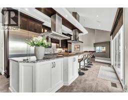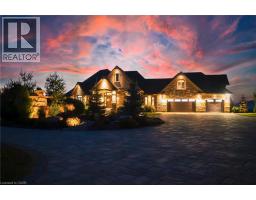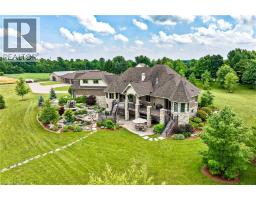 A rare offering in the prestigious countryside of St. Clements—46 Anita Drive is an 18.28-acre gated luxury estate that elevates refined country living. Beyond the custom iron gates, a 900 ft interlock drive leads to meticulously landscaped grounds revealing a showpiece 12ft granite Inukshuk roundabout. The $1M+ surrounding landscape/hardscape includes spectacular mature gardens and trees, a grand armour stone and granite waterfall cascading into a tranquil pond-crafted for privacy and prestige. Main residence exterior is a complementary blend of brick, stone and stucco spanning 7,325 sf on 3 levels. Radiant in-floor heating and Savant smart home automation throughout including garages. Vaulted ceilings, detailed poplar, oak and maple millwork and handcrafted finishes elevate every space. The home is filled with character and grandeur, featuring a double staircase leading from the upper deck down to the lower patio. At the heart of the home, a designer chef’s kitchen features Gaggenau appliances including range, teppanyaki, charcoal grill, 17 ft Cambria/Caesarstone quartz island, Cambria counters and backsplashes seamlessly flow into the sunlit family room that shares a 3-sided gas fireplace. The primary suite is a private retreat with a spa-like 9-piece ensuite, heated floors, surround sound, serene turret sitting area and boutique-style dressing room. The walk-out lower level is an entertainer’s dream-offering a custom bar, custom natural stone floor-to-ceiling gas fireplace, home theatre, gym & guest rooms. A 3,500 sf heated workshop/coach house with 11 ft ceilings and triple garage doors offers a workshop paradise or auxiliary residence conversion potential. In addition there is also a 2,468 sf steel storage building with custom steel pallet racking for 72 skids completes this extraordinary estate. Has potential for a unique equestrian setup. Fully irrigated around all three building perimeters, zoned A1 Agricultural, and min. to Waterloo and highway access. (id:50886)