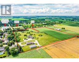 A rare offering in the prestigious countryside of St. Clements. 46 Anita Drive is an 18.28-acre gated luxury estate that elevates refined country living. Beyond the custom iron gates, a 900ft interlock drive leads to meticulously landscaped grounds revealing a showpiece 12ft granite Inukshuk roundabout. The $1M+ surrounding landscape/hardscape includes spectacular mature gardens and trees, a grand armour stone and granite waterfall cascading into a tranquil pond-crafted for privacy and prestige. Main residence exterior is a complementary blend of brick, stone and stucco spanning 3 levels of 7,325 sf. Radiant in-floor heating and Savant smart home automation throughout including garages. Vaulted ceilings, detailed poplar, oak and maple millwork and handcrafted finishes elevate every space. The home is filled with character and grandeur, featuring a double staircase leading from the upper deck down to the lower patio.At the heart of the home, a designer chefs kitchen features Gaggenau appliances, teppanyaki, charcoal grill, 17ft Cambria/Caesarstone quartz island, Cambria counters and backsplashes seamlessly flow into the sunlit family room that shares a 3-sided gas fireplace. The primary suite is a private retreat with a spa-like 9-piece ensuite, heated floors, surround sound, serene turret sitting area and boutique-style dressing room. The walk-out lower level is an entertainers dream-offering a custom bar, custom natural stone floor-to-ceiling gas fireplace, home theatre, gym and guest rooms. A 3,500 sf heated coach house with 11ft ceilings and triple garage doors offers a workshop paradise or auxiliary residence conversion potential. In addition there is also a 2,468 sf steel storage building with custom steel pallet racking for 72 skids completes this extraordinary estate. This has the potential for a unique equestrian set-up. Fully irrigated around all three building perimeters, zoned A1 Agricultural, and minutes to Waterloo and hwy access. (id:50886)