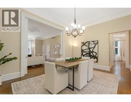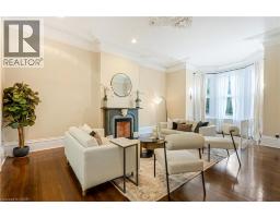 $527.27 MonthlyOwn a piece of the city’s history in this stunning 1,700 sq. ft. condo, part of a beautifully maintained 1870s building with only 4 exclusive units. This main-floor suite is the only one with a private entrance and direct access to parking. Soaring 11-ft ceilings, tall windows, and walnut hardwood floors highlight the spacious living and dining rooms, complete with custom built-ins and fireplace. The gourmet kitchen boasts high-end cabinetry, granite counters, and stainless steel appliances. Both bedrooms feature updated ensuite baths, plus there’s in-suite laundry, ample storage, and two parking spaces. Nestled in a quiet downtown neighbourhood, steps to St. Joseph’s, Durand Park, GO Station, trails, and James St. S. shops and cafés. Modern updates meet timeless charm—an opportunity rarely offered. (id:50886)