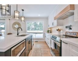 Welcome to 46 Holloway Lane in the prestigious sought-after Midhurst Community. This fully renovated home offers modern elegance and an open concept main floor. The home features three spacious bedrooms with a large and functional walk-in closet and two full bathrooms upstairs with tons of natural light. The new custom kitchen is perfect for cooking and entertaining, with the large island, exquisite quartz countertops, under mount lighting, under mount sink, pot filler & SS appliances. The large dining room with sliding doors allows you to access the newly built and over-sized rear wood deck. A perfect deck to entertain or sip on your coffee in the morning. The family room offers a stunning floor to ceiling shiplap, custom built-ins, and a sleek linear electric fireplace. This stunning turn-key home has been; freshly painted throughout, updated light fixtures, pot lights, engineered hardwood floors on main, all new bathrooms with new vanity, tub/showers, toilets, fans, porcelain tile, and granite tile. All new interior doors, trim, casing & hardware. New Railing, spindles and carpet on stairs. Updated laundry room with garage access to the oversized 3 car garage. In-law suite Basement features large living & Rec room with a cozy gas fireplace. Two large bedrooms, new modern 4-piece bathroom, freshly painted throughout, new vinyl floors, pot lights, doors and trim. Wet Bar, full kitchen, rough in plug for a stove and laundry in lower level as well. Furnace, Air conditioner, blown in attic insulation & Central Vac in 2024. 3 Car garage with gas heater rough-in and 6 plus car parking, exterior soffit pot-lighting. The charming lot is tastefully landscaped with mature trees, hedges, garden shed, and large poured concrete front porch. This stunning home is a short drive to; parks, schools, trails, and much more. (id:50886)