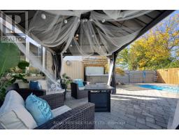 Welcome to 46 Lownie Crt! Beautifully updated 3+1 bdrm, 4-bath link home on a quiet, family-friendly court in desirable Bowmanville, backing onto Guildwood Park. This warm & stylish home offers comfort & functionality throughout. Main flr features a convenient 2-pc bath, cozy liv rm w/ built-ins & Calif shutters, & an inviting eat-in kit overlooking the serene backyard. Kit boasts quartz cntrs, farmhouse dbl sink, SS gas stove w/ dbl convection oven, & dbl patio drs leading to your private retreat. Upstairs offers 3 generous bdrms, incl a 2nd bdrm w/ gas FP & bright 4-pc bath. The spacious prim suite features a 4-pc ensuite w/ glass shower, dbl quartz vanity, & convenient in-suite laundry. Triple-pane windows in the prim bdrm & laundry enhance comfort & energy efficiency. Fin lower lvl offers a sep entrance through garage, kitchenette, & 3-pc bath, providing fantastic flexibility - ideal for in-laws, extended family, or guests. Also features a spacious rm currently used as a bdrm (no egress window) - perfect for guests, home office, or hobby space. Step outside to your own private oasis - gas-heated salt-water pool, salt-water hot tub, gazebo, & BBQ w/ gas line make this yard an entertainer's dream, backing onto the peaceful greenery of Guildwood Park. Enjoy nearby Soper Creek trails, mins to parks, schools, shops, amenities, & easy 401 access. Move-in ready & filled w/ thoughtful updates - this home truly checks all the boxes! (id:50886)