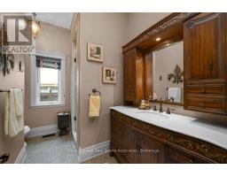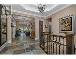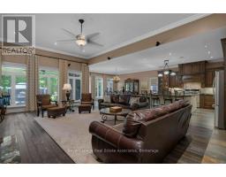 Welcome to 46 Scott Street a truly exceptional custom bungalow designed with care, craftsmanship, and every detail thoughtfully considered. The open-concept main floor features a stunning chefs kitchen with granite island, double sink, two ovens, 5-burner gas range, pasta pot filler, water filtration, pot lights, built-in speakers, and wine fridge all flowing into a spacious great room with 12' ceilings, stone gas fireplace, surround sound, and custom blinds. The dining area opens directly to your private backyard oasis. The primary suite is a true retreat with a luxurious 5-piece ensuite: Jacuzzi tub, large shower with rain head and body sprays, crystal chandelier, electric fireplace, walk-in closet, and custom built-ins. A generous office, second bedroom, and large laundry room with sink, stone backsplash, folding table, and ample storage complete the main floor. Enjoy the quiet of solid 8' soundproof doors and 10" walls throughout. The fully finished basement features 9' ceilings, heated floors, custom oak kitchen with Corian island, top-quality appliances, rec room with two-sided stone gas fireplace, games area, two large bedrooms, and a spa-like 3-piece bathroom with steam sauna, rain shower, body sprays, and light-up wall fountain. Also includes 2 soundproof studio rooms and 2 cold storage areas. The oversized garage is ideal for car enthusiasts, offering lift height, custom shelving, inside access, two garage door openers, and finished walls. The backyard offers privacy with mature trees, irrigation system, 12x12 gazebo, gas BBQ hookup, shed, covered porch, and a peaceful stone waterfall. Additional features: 2x6 construction, stone and brick exterior, high-efficiency furnace, RO system, water softener, on-demand water heater with backup tank, security system, dimmable lighting, two staircases, and expansive windows overlooking landscaped gardens. This one-of-a-kind home is a must-see built with top-tier quality, comfort, and timeless style. (id:50886)