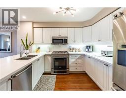 Welcome to 460 Woolwich St, Unit 6 — an exquisite high-end executive townhome offering the perfect blend of luxury, modern upgrades, and natural tranquility. This recently upgraded 3-bedroom, 3-bath residence is nestled in one of Waterloo’s most desirable communities, backing onto a serene trail and lush greenspace for ultimate privacy. Upon entry, you’ll find a convenient powder room, a spacious recreation room ideal for a gym or home office, in-suite laundry, and direct access to a private backyard oasis surrounded by nature. The second level showcases a bright, open-concept layout with a newly upgraded kitchen featuring stunning quartz countertops and a sleek peninsula, seamlessly flowing into the dining and living areas—perfect for entertaining. Step out from the dining room onto a private balcony to enjoy morning coffee or evening sunsets. The third level offers two well-appointed bedrooms, one perfect for guests or a home office, and a stylish 3-piece bathroom. The top floor is a true retreat, featuring a luxurious primary suite with a walk-in closet, a spa-inspired 4-piece ensuite, and ample space for a sitting area or reading nook. With modern finishes throughout, multiple outdoor spaces, and direct access to nature, this home redefines executive living. Ideally located near shopping, parks, golf courses, and major highways, Unit 6 at 460 Woolwich St delivers elegance, comfort, and convenience in every detail — the ultimate place to call home. (id:50886)