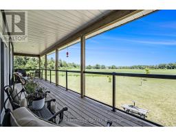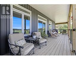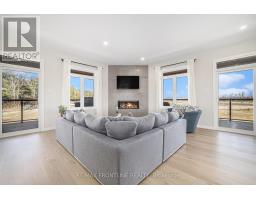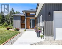 Welcome to this beautiful 3 bedroom, 2-bathroom open concept bungalow that perfectly blends comfort, style, and functionality. Set on a spacious 3.5 acre lot, this home features a back covered wrap around porch with sleek glass guard railing offering modern curb appeal and a relaxing space to enjoy your morning coffee. Inside, you'll find a bright and open layout centered around a stunning kitchen with a large Cambria quartz island perfect for cooking, entertaining, and gathering. The living and dining areas flow seamlessly together, with a cozy propane fireplace adding warmth and charm. Two bedrooms offer direct walkout access to the back deck, providing a private connection to outdoor living. The primary suite offers a spacious 4 piece ensuite. The full basement is partially finished and roughed-in for a future granny suite or custom bar, offering incredible potential for additional living space, income opportunity, or entertainment. Additional highlights include a durable steel roofing and siding, central vacuum system, and a double car garage for convenience and ample storage. (id:50886)