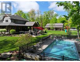 A picturesque 4.5 acres parcel on a paved road just minutes from the 401/403. A stunning 4,000 sq. ft. + custom built 2 story home with impressive timber frame accents. This executive quality built home features 4+1 bedrooms & 4 baths. The covered timber frame deck and interlocking patio is a real showpiece! There is a private covered deck off the master suite on the main floor. The attached double oversize garage is clad with white plastic board and features a stairway to the lower level with family rooms, games room, a wet bar that is kitchen sized, and much more. The outdoor living oasis this property offers is second to none featuring a newly built inground pool, hot tub, covered timber frame deck, interlocking patio & bush with a walking trail. You will have no shortage of garage space with the attached oversized two car garage & an absolute dream 36' X 48' heated shop. The shop features a large mezzanine & is heated with a radiant heater. This property offers something for everyone while providing privacy, peace & quiet. Just minutes from Hwy 401 / 403 so commuting is a breeze. This one is the full package and then some. (id:50886)