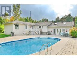 Down a quiet dead-end road, tucked into a one acre lot among the trees, sits this lovely bungalow that feels like a retreat every single day. This 1,900 sq. ft. bungalow is designed or gathering, laughing, and living well. Step inside and you're greeted with wide open spaces the great room with its cozy propane fireplace, a kitchen with more drawers and cabinets than you'll know what to do with, and plenty of room for everyone to mingle. Two bedrooms upstairs (with space to easily add a third!) plus a fully finished lower level mean there is room for family, guests, hobbies, or whatever life throws your way. When its time to unwind, head outside. The in-ground pool with its newer liner and pump (2024) sparkles in the sunshine, framed by the privacy of mature trees. Its your very own backyard escape where summer memories are made. A 23' x 25' detached garage offers space for cars, lawn mowers, and outdoor toys. Thoughtful renovations over the years and efficient heating with an electric heat pump (2025) plus propane, have given this home the modern comforts to match it's charm. This is more than a house it's an entertainers dream, a peaceful retreat, and the perfect place to call home. (id:50886)