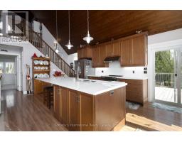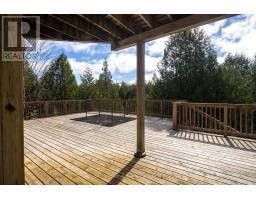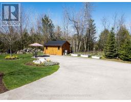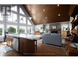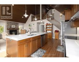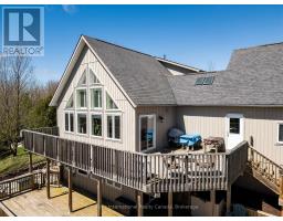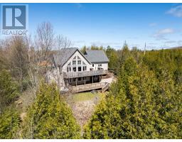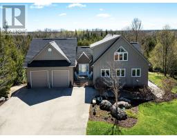 Private Country Retreat. Escape to your own private 4.5-acre sanctuary, perfectly situated on a paved road just minutes from Lake Eugenia and Beaver Valley Ski Club. This beautifully maintained 3-bedroom, 3-bathroom home offers over 2,500 sq ft of living space designed for comfort, style, and connection with nature.Step inside the light-filled Great Room featuring soaring vaulted ceilings, a stone fireplace with gas insert, and expansive south-facing windows with custom shutters and shades. The open-concept layout flows seamlessly to a modern kitchen with a large island, gleaming quartz countertops, and stainless steel appliances ideal for entertaining or relaxed family living.The main floor includes a spacious Master Suite complete with a luxurious ensuite and walk-in closet, as well as convenient main-floor laundry and direct access to the double garage making this home ideal for easy, single-level living.Upstairs, a loft bedroom with ensuite (currently used as an office) overlooks the Great Room and offers tranquil views of the wooded landscape. The lower level boasts a bright and welcoming atmosphere with a third ensuite bedroom, a fully equipped home theatre, custom bar, a second stone fireplace with gas insert, extra soundproofing, and walk-out access to the expansive main deck.Work from home with ease thanks to high-speed internet connectivity, ensuring smooth video calls, streaming, and productivity. Stay connected and secure with cable TV and a modern security system.Outside, enjoy a nature-lovers paradise: rolling, wooded terrain, frog ponds, raised vegetable beds, and low-maintenance perennial gardens. Two out buildings a cedar potting shed and an additional equipment shed add convenience and charm.Built in 2011 and meticulously maintained, this country retreat offers the perfect blend of privacy, functionality, and natural beauty. Whether you're looking for a full-time residence or a peaceful weekend getaway, this exceptional property delivers. (id:50886)