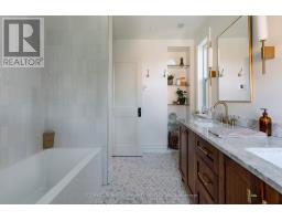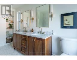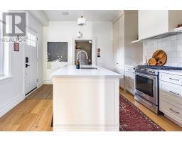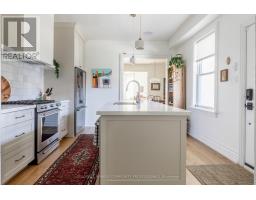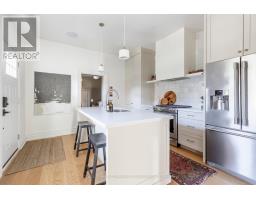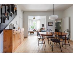 A royal find on King William. This 3 bedrm, 2 bath brick semi retains its century-old character while delivering the chic updates and functionality todays buyer craves. Step inside to a traditional layout with soaring ceilings, a bay window that floods the living room & formal dining room with natural light, and impeccable design touches throughout. The chic, trendy-yet-classic finishes make every space feel fresh and inviting. A rare and handy feature is the main floor powder room. There is the convenience of a main floor bedroom that could also double as the home office or hobby room. The eat-in kitchen is truly one to die for! The kitchen is beautifully designed for both everyday living or entertainment- friends or family can hang out around the large island, have a cocktail or snacks, and everyone can enjoy the built-in speaker system. Upstairs, retreat to a spacious primary bedroom, with the convenience of an upper level laundry room so there's no need to carry laundry downstairs. Indulge in the stunning 5-piece bathroom, featuring double sinks, a huge shower, ample storage, built-in speaker system and heated floors - spa-like finishes you'll fall in love with. Outside, this corner lot is just as impressive, featuring a Trillium Award winning garden, a cozy and private side yard oasis, with 2-tier deck, plus rare 3-car parking. With style, substance, and undeniable curb appeal, this home is the total package. RSA. (id:50886)