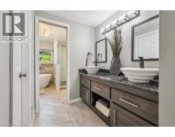 Unparalleled Luxury Home in Prestigious Westvale/Beechwood Welcome to this fully renovated executive home, ideally located on a quiet court in one of Waterloo’s most sought-after neighborhoods. Backing directly onto scenic trails and a large family park, this residence offers unmatched privacy, tranquility, and upscale living. No detail has been overlooked in this top-to-bottom transformation. Walls have been removed to create a stunning open-concept layout featuring a designer kitchen with custom cabinetry, high-end finishes, and a built-in coffee/wine bar—perfect for entertaining. The spacious living and dining areas are filled with natural light and upgraded with all-new flooring, pot lights, and stylish finishes throughout. The primary suite is a true retreat with a private lounge area and a spa-like en-suite showcasing a standalone soaker tub, glass shower, and elegant neutral tones. Three additional generous bedrooms and a beautifully updated 5-piece bathroom provide comfort and style for family or guests alike. Step outside to your professionally landscaped backyard oasis, complete with new composite decking, privacy walls, and modern decorative fencing—ideal for relaxing or hosting. Additional features include energy-efficient windows (with transferable warranty), a widened, wheelchair-accessible front walkway, and numerous premium upgrades throughout. Situated near top-rated schools, universities, shopping, and transit, this exceptional property blends timeless elegance with modern luxury. A rare opportunity not to be missed. Contact us today to schedule a private tour or visit during our upcoming open house! (id:50886)