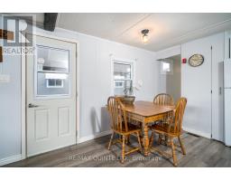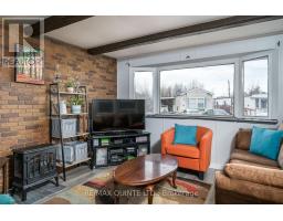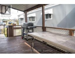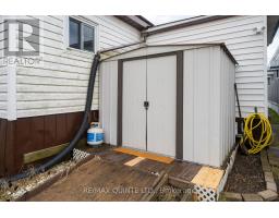 Discover the potential of this charming 2-bedroom, 1-bathroom home, ideally situated next to a tranquil creek and just a short distance from the beautiful Bay of Quinte. This property is perfect for young buyers and those looking to downsize, offering a unique opportunity to create your personal oasis. While the home has been updated with laminate flooring and features a renovated bathroom and updated kitchen offering white cabinetry, double sink, soft-close drawers & modern countertops, there's still room to personalize this home to suit your style. With exposed faux brick and attractive ceiling beams in the living room, this cozy home gains a lot of charm. Generous windows and bright white walls fill the interior with natural light, creating a warm and inviting atmosphere. A new forced-air furnace was installed in 2020, providing reliable heating along with updated plumbing and light fixtures, essential upgrades for comfortable living. Enjoy picturesque views of the creek and the Bay of Quinte from the primary bedroom, which features built-in drawers and ample natural light. The spacious covered deck is perfect for entertaining or enjoying quiet evenings outside.Additionally, a convenient storage room is accessible from both the home and the deck, along with a sizable shed in the backyard to meet all your storage needs. Experience the ease of living with grocery stores, restaurants, and essential amenities within walking distance. This affordable home is a canvas ready for your personal touch. Whether you're looking to start fresh or downsize, this property offers an incredible opportunity to invest in a lifestyle filled with minimal yard work, convenience and a great community. Don't miss your chance to make this wonderful space your own! The Current Land lease fee is $299.23 plus Taxes of $49.73 per month, and water is $106.85 per month for a total of $455.81/month. (id:50886)