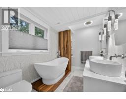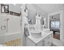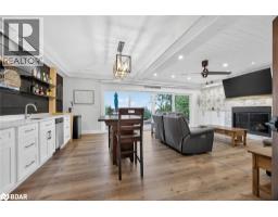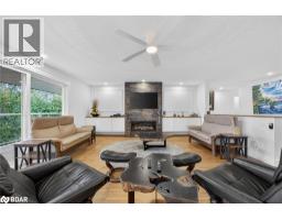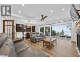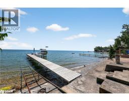 On a quiet, tree-lined crescent, this turnkey brick bungalow offers an exceptional lifestyle on one of Lake Simcoe’s most sought-after stretches of shoreline. 5 bedrooms, 4 bathrooms & a beautifully renovated bunkie above the single-slip boathouse, lakeside living at its finest.Professionally landscaped front and back with lush perennials, a full irrigation system. Engineered hardwood throughout the main floor. Kitchen with quartz countertops, Thermador WiFi-enabled gas range, pot filler & premium finishes. Living room with gas fireplace & dining area with walkout to a sprawling 75-ft deck (gas BBQ hookup)overlooking the lake - perfect for entertaining. Main floor primary features a luxurious ensuite with heated floors, large walk-in shower, Bluetooth in-wall speaker, in-suite laundry hook-up & a private walkout with water views. Two additional main floor bedrooms share a 4-piece bath.Recreation room with fireplace & walkout to a private hot tub area overlooking the water. Wet bar with fridge and dishwasher. 2nd primary with fireplace, built-ins, water views, walkout access & an opulent ensuite featuring a soaker tub on a solid walnut base, heated floors, double vanity & glass shower. Additional 5th bedroom, 2-piece powder room, laundry room, 6-person sauna with separate shower & mudroom with built-in dog bath. Renovated bunkie above the 26' x 12' boathouse, complete with kitchen & 3-piece bath — ideal for guests who won't want to leave”. Marine railway to the boathouse. Waterside 10' x 19' deck, concrete stairs, break wall & 100’ of clean, hard-bottom pebble shoreline with approximately 5 feet of depth off the dock with hard bottom sand— perfect for swimming & water activities. Association dues include access to 62 acres of private parkland with nature trails for walking, cross-country skiing, etc & two waterfront tennis courts. Minutes to the Simcoe Rail Trail for biking, running, walking, or snowmobiling. Close to Orillia for amenities. 1 hour to the GTA. (id:50886)