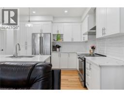 Welcome to this stunning 2-storey home in the prestigious Doon South neighbourhood. Offering over 2,300 sq.ft. of beautifully finished living space that blends custom craftsmanship with modern elegance. From the moment you enter, you're greeted by oversized marble-look tiles and a bright, spacious layout featuring engineered hardwood floors, soaring 9’ ceilings, and an open-concept design perfect for family living and entertaining. The chef’s kitchen boasts full-height custom cabinetry, quartz countertops, a walk-in pantry, timeless subway tile backsplash, and a full 2020 stainless steel KitchenAid appliance package. Oversized 8’ patio doors lead to a fully sodded and fenced backyard with space for a future deck, garden, or play area. Upstairs, enjoy the convenience of second-floor laundry and three sun-filled bedrooms with blackout window coverings, including a luxurious primary suite with a spa-inspired ensuite featuring a glass walk-in shower and rainfall head. The unfinished basement with a 2-piece washroom rough-in offers excellent potential for future development. Additional features include central A/C, water softener, humidifier, and a stamped concrete/paver stone 3-car driveway. Ideally located just minutes from Hwy 401, this quality Ridgeview home is a rare opportunity where luxury, comfort, and location come together seamlessly. (id:50886)