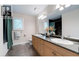 Spectacular executive detached home ideally located in one of Waterdown's most desirable kid-friendly neighbourhoods. Stunning (47 x 174 ft) lot with a fully fenced yard ideal for entertaining and letting the kids outside to play. This 4-bedroom, 2+1 bathroom home features over 2500 sqft of bright and spacious open-concept living space. Large separate dining room, cozy living room with a gas fireplace, and a large eat-in kitchen. Featuring professional series stainless steel appliances, ceramics, oversized island, and granite countertops. California shutters throughout on both floors. The Upper level features 4 spacious bedrooms. French doors open up to the primary bedroom, with a large walk-in closet. Spacious ensuite with a Jacuzzi spa tub and a large glass shower. Both primary and guest bathrooms feature double sinks and heated floors. Enjoy the convenience of being close to top-rated schools, shopping centres, downtown amenities, parks, and highways. Move-in-ready, beautiful property in a prime location. (id:50886)