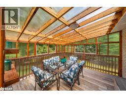 Experience the perfect blend of lifestyle, luxury, and location in this exceptional executive raised bungalow—fully above grade with no basement—tucked away on a quiet, tree-lined court in one of Midland’s most desirable communities. Just steps to Georgian Bay and a beautiful sandy beach, this home offers four-season recreation—from summer fun on the water to winter snowmobiling—while being minutes to downtown, trendy restaurants, shopping, banks, and major retailers. A short stroll takes you to Midland’s renowned paved trail system—loved by cyclists, runners, and nature lovers—connecting to downtown, Wye Marsh, and other key attractions. Enjoy seasonal water views, serenity, and no through traffic—just the sound of birds and rustling trees. At the heart of the home is a stunning chef’s kitchen featuring solid wood cabinetry with dovetail joinery, quartz countertops, soft-close drawers, under-cabinet lighting, dual sinks, and a jaw-dropping 10'11 island crafted from a single slab of quartz. The spacious living and dining area flows seamlessly to a large deck with two sunrooms. The primary suite offers a walk-in closet, ensuite bath, laundry and walkout to a sunroom complete with hot tub and infrared sauna. Two additional bedrooms and a full bath complete the main level. Step outside to a private oasis: an expansive upper deck, two enclosed gazebos, power awning, secluded firepit, greenhouse, and tiered landscaping. The heated and air-conditioned oversized garage with back workshop and two large sheds provide ample storage for boats, kayaks, ATVs, and more. A beautifully finished lower-level suite (2023) with a full kitchen, 4-pc bath, laundry, and separate entrance offers flexibility for guests, in-laws, or rental income. Ideal for a small business or live/work setup, this property offers versatile space in huge garage / lower level to seamlessly balance work and lifestyle. This is not just a home—it’s a lifestyle destination. (id:50886)