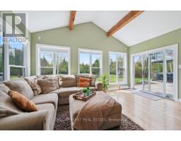 Set on 10.64 peaceful acres just outside Mount Forest, this inviting 1.5-storey country home offers a rare mix of space, function, and natural beauty, perfect for those seeking rural living with room to grow and work from home. The main house features four bedrooms plus a den, two and a half bathroomsincluding a newly finished ensuite (2024). A sunroom with views of the spring-fed pond, and thoughtful upgrades throughout the years including a roof (2024), North Star windows and exterior insulation (2016), quartz countertops and a farmhouse sink in the kitchen (2024), stainless steel appliances (2021), updated plumbing (2022), and ductless heating and cooling in the great room and three bedrooms (2021). The home is heated with a Pacific Energy wood fireplace, which comfortably heats the home in winter using about eight cords of wood per season. Electrical updates include a new breaker panel with surge protection and space to expand (2022), plus a GenerLink hookup for easy generator connection. Outside, the property is well set up for comfort and enjoyment with a stamped concrete patio and a powered custom grain bin gazebo, Tannoy outdoor speakers at both front and back, and a new back deck with built-in bench seating. A beautiful spring-fed pond (14 feet deep) with a fountain, a meandering river along the rear property line, and a cedar bush with trails offer scenic and recreational value. A fully outfitted 1,800 sq ft (30x60 ft) heated shop with in-floor heating, 12-foot ceilings, three large poly doors with keypads, a separate hydro panel, and air compressor lines,supports home business or hobby use. A converted garage unit and insulated 575 sq ft studio space. All buildings are connected to a dug spring well with a new pump (2022), and most downspouts are tile-drained underground. This is a well-cared-for rural retreat offering character, space, and flexibility. (id:50886)