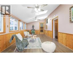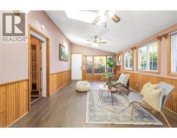 Welcome to this solid brick bungalow located in Brantford’s highly sought-after north end. This charming home greets you with a large covered front porch — the perfect place to relax and enjoy your morning coffee. Step inside to find beautifully maintained hardwood floors that flow through the bright living and dining rooms. A large front window fills the space with natural light, creating a warm and inviting atmosphere. The galley-style kitchen offers plenty of cabinetry, a stylish tile backsplash, and ample counter space for meal preparation. The primary bedroom features hardwood flooring and a spacious closet, while two additional bedrooms provide ideal spaces for children, guests, or a home office. A conveniently located four-piece bathroom completes the main level. A highlight of this home is the stunning sunroom with brand-new flooring and walkout access to the backyard — a wonderful spot to unwind or entertain. The fully finished lower level offers an expansive recreation room with a cozy gas fireplace surrounded by stone, a bar area perfect for hosting friends and family, and an additional three-piece bathroom for added convenience. Outside, enjoy an extra-large, fully fenced, and private backyard, offering plenty of room for gardening, play, or outdoor gatherings. Additional features include two heaters that are hooked up and piped in, as well as a 100-amp electrical service. Perfectly located close to excellent schools, shopping, parks, and all amenities, this 3-bedroom, 2-bath bungalow combines comfort, character, and convenience — a true gem in Brantford’s north end. (id:50886)
