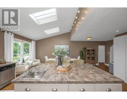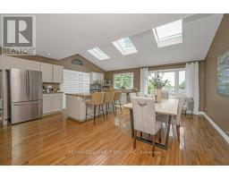 Welcome to this charming 1.5-storey fully detached home, offering over 2,000 sqft of thoughtfully designed living space blending character, comfort, and convenience. Offering 3 bedrooms and a fully finished basement, this home is ideal for families, entertainers, or anyone seeking versatile living space. Step inside to a spacious open-concept kitchen featuring a centre island, ample storage, and plenty of natural light from large windows and skylights. Hardwood floors flow throughout the main level, adding warmth and elegance. Enjoy your morning coffee or a pre-dinner cocktail while taking in beautiful views of the private backyard complete with an inground pool, cozy fire pit area, and generous green space perfect for kids and/or pets. The inviting living room features a charming wood-burning fireplace, ideal for cozy winter evenings. A newly renovated main bathroom includes a large stand-up shower, updated vanity, stylish lighting, and added storage conveniently situated between two well-sized bedrooms. Retreat upstairs to your private primary suite featuring vaulted ceilings, skylights, and its own water closet. With plenty of space, there's exciting potential to create a stunning ensuite bath. Bonus: access to ample attic storage adds to the home's practicality. The fully finished basement provides great versatility with a gas fireplace, spacious 3-piece bathroom, dedicated laundry area, large storage room, and potential for a separate entrance ideal for extended family or future in-law suite. Parking for 8 cars and situated close to major highways,schools, shopping, and all amenities this home truly offers lifestyle and location. Don't miss the chance to make it yours! (id:50886)