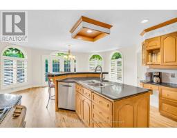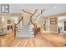 Welcome to 484 Bush Drive. This gorgeous home features over 5,600 square feet on all 3 levels. The large 4 car interlock driveway welcomes you to this stately home with a flagstone porch, landscape lighting, irrigation system, exterior pots in soffits, double door entry and oversized double garage. The main floor features hardwood floors (refinished 2025), large foyer, formal living room, expansive dinning room, sunken family room, laundry, large office and a bright eat in kitchen with double door phantom screen entry to backyard. The second floor has an open and sun filled landing which leads to the double door entry for primary suite. This oversized suite spans the entire back of the house with a gas fireplace, built-ins, motorized blinds, a walk-in closet and completely renovated primary ensuite (2024) with air tub, porcelain floors, custom solid wood double vanity and glass enclosed shower. 3 additional large bedrooms, 1 with ensuite and another gorgeous renovated bathroom (2024) with glass enclosed shower, soaker tub and custom vanity. Fabulous lower level perfect for a nanny or in-law suite with a second full kitchen, 2 bedrooms, 3 piece bathroom, recreation room with built-ins and projector screen. Fully landscaped backyard with custom wisteria covered pergola with lighting and stone gas fireplace, fountain, privacy screen, built-in bar, gas barbecue, granite topped table and meticulously manicured gardens. Spectacular location, minutes from the 403, around the corner from the Hamilton Golf and Country Club and a 5 minute drive from the Meadowlands shopping centre. Dont miss this opportunity to own one of the biggest homes on this spectacular street. (id:50886)