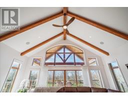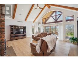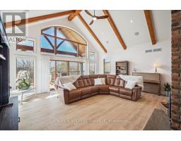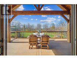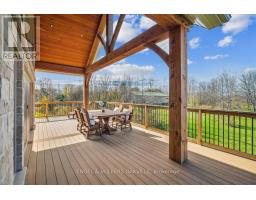 A true model of sustainable luxury, this newly built net-zero ranch bungalow offers approx. 5,300 sq. ft. of refined living space on a private 6.6-acre property. Powered by a geothermal furnace and 32 solar panels, this home blends cutting-edge technology with sophisticated design for the ultimate modern lifestyle.Featuring 5 bedrooms and 5 bathrooms, this home is thoughtfully designed for both family living and entertaining, with upper and lower designer kitchens, in-floor radiant heating, and a stunning wrap-around deck with custom timber columns and arches offering panoramic views of nature. The main floor showcases a chef's kitchen with built-in appliances, a spacious pantry, and an eat-in area with two walkouts to the deck. The great room impresses with vaulted ceilings and a wood-burning fireplace. A private wing includes a home office and a bedroom with ensuite, while the secluded primary suite features a walk-in closet, spa-like 5-piece ensuite, and private deck walkout.The fully finished lower level extends the living space with a second kitchen, large family room with fireplace, walkout to patio, three oversized bedrooms, and a designer 4-piece bath - ideal for guests or multi-generational living.A 2,176 sq. ft. auxiliary building with heated floors, water service, and two large doors offers endless possibilities - approved for Airbnb use or perfect as an art studio, workshop, or business space. A charming creek with bridge leads to a naturalized area for tranquil enjoyment or future development. Located minutes from Lincoln amenities and Niagara's renowned wine country, this property represents the pinnacle of sustainable, elegant living. (id:50886)