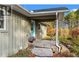 Discover this beautifully maintained bungalow, built in 2009, perfectly situated on a private 6.735-acre lot offering space, comfort, and natural beauty. The main level features an open-concept design with a spacious kitchen, dining area, and a bright living room highlighted by large windows and a stunning stone wood-burning fireplace. The home includes two bedrooms, two bathrooms, and a convenient main-floor laundry with a direct access hatch from the primary bedroom. A versatile bonus room provides the ideal spot for a home office or hobby nook. The basement boasts 10-foot ceilings, offering excellent potential for a home gym, workshop, or additional living space. Step outside to enjoy a covered back deck and screened-in porch, perfect for relaxing or entertaining in every season. Additional features include a detached two-car garage, powered tractor shed, garden shed, and wood shed. Surrounded by mature trees and offering complete privacy, this property is also conveniently located near the rail trail, with direct access to ATV and snowmobile trails-a dream for outdoor enthusiasts. Blending functionality, comfort, and rustic charm, this exceptional property delivers the perfect peaceful country lifestyle. (id:50886)