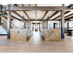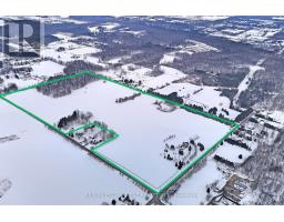 Luxury, comfort & country living! 91.6-acre estate offers rolling farmland, dense woodlands & a spring-fed pond, approx. 4-5ft deep. The property is currently farmed organically, creating a peaceful, sustainable setting. Fully renovated 2.5-storey, 6 bed, 6 bath home w/ attached 2 bed 2 bath guest house was remodeled by Neven Custom Homes in 2022/23, featuring $2M in premium renovations. DaVinci composite shake roof, custom windows, new doors, spacious living areas & elegant details throughout. Grand wrap-around veranda & glass-railed deck. Gourmet kitchen w/ 2 expansive islands, ample storage & luxury appliances. Separate prep kitchen. Open-concept design leads to dining room, breakfast area & grand great room w/ 208 ceilings, stone fireplace & sliding doors to large deck. Main floor also includes powder room, laundry, mudroom, 3pc bath & 4-car garage. Upstairs, primary suite features timber frame accents & luxurious 5pc ensuite, while 2 additional bedrooms share a beautifully designed 4pc bath. Half-storey above offers bonus room, ideal for a studio or bedroom, along w/ a den. Lower level is perfect for extended family, w/ rec room, full kitchen, bedroom, bath & walkout to backyard. Attached guest house includes spacious kitchen, high-end appliances, separate laundry, walkout deck & open living/dining areas w/ panoramic views. Main-floor bedroom w/ walk-in closet & Jack-&-Jill ensuite. Additional features: Large Quonset hut (2010), over 800 evergreen trees, forested area, 2 septic systems & 2 geothermal systems. Located near amenities, offers rare opportunity for luxurious lifestyle w/ endless possibilities. LUXURY CERTIFIED. (id:50886)