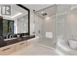 Step into a world of refined sophistication in this brand new modern luxury residence that harmoniously blends elegance with functional elevated standard of living. Spanning over 5,000 square feet of meticulously curated living space, this architectural gem offers an expansive layout ideal for both grand entertaining and simple everyday living. At the heart of the home lies a chef's dream kitchen with a stunning 9-foot island that doubles as a breakfast bar, Sub-Zero appliances, and a secondary prep kitchen. The main floor opens to a custom deck for seamless indoor-outdoor living, while the upper level includes four spacious bedrooms with spa-inspired ensuites and a laundry room for everyday convenience. The primary suite impresses with a large walk-in closet,private balcony, heated ensuite floors, and a soaker tub. The lower level boasts 16-foot ceilings, a wet bar with a Dual-Zone mini fridge, and a walkout lounge area, letting you entertain your guests with ease. Flooded with natural light and crafted with precision, this home exemplifies contemporary luxury in a highly walkable neighbourhood - steps from top schools, parks, shops, and transit, with easy access to Allen Road, Highway 401, and Yorkdale Mall. (id:50886)