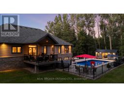 Your Private Resort, Every Day of the Year. Tucked away on 2.5 acres of mature trees and rolling landscape, this custom-built home isn't just a place to live - its a lifestyle. From the moment you arrive, youll feel the peace and privacy of country living, all while being steps from walking trails and minutes from town conveniences. Inside, soaring vaulted ceilings and a floor-to-ceiling propane fireplace set the tone for gatherings with family and friends. The open-concept design flows seamlessly from the living and dining area into a chefs kitchen with quartz countertops, extended cabinetry, stainless steel appliances, and a striking glass backsplash. Every detail has been crafted for both function and style. The main floor offers four bedrooms, including a primary suite designed as a true retreat, complete with a spa-like 5-piece ensuite and walk-in closet. The finished lower level with private garage entrance extends the lifestylewhether you need a guest suite, home gym, or office. A 5th bedroom, 3-pc bath, and expansive mudroom with storage make the space versatile and practical. Step outside and discover why this property is truly exceptional. A saltwater pool glistens in the sun, paired with a hot tub and covered deck that invite you to host summer parties, quiet evening dinners, or simply unwind after a long day. With walking trails at your doorstep and a backyard that feels like a private resort, this home delivers a lifestyle most only dream of. Luxury, privacy, and connection to nature this home is more than a residence. Its where family memories are made, friends gather, and every day feels like a getaway. (id:50886)