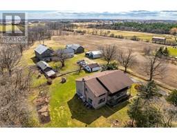 Pride of original ownership is evident throughout this 6 bedroom, 3 bathroom Custom Built Estate home on sought after Second Road East situated perfectly well back from the road on picturesque 28.37 acre Estate property with perfect mix of workable land & forest/bush area. Stately curb appeal with paved driveway, front gated entry, multiple outbuildings including workshop / garage with concrete floor, Quonset hut, multiple barns, attached garage, & detached garage. The flowing interior layout includes over 4500 square feet of well planned living space highlighted by eat in kitchen with ample cabinetry, formal dining area, family room with fireplace, living room, MF office, 3 pc bathroom, MF laundry, & welcoming foyer. The upper level features 5 bedrooms including large primary suite with ensuite bathroom, & primary 5 pc bathroom. The finished lower level includes walk out separate entrance allowing for Ideal in law suite / multi generational set up, rec room, kitchenette, bedroom, cold cellar, & ample storage. Conveniently located minutes to amenities, shopping, Lake Ontario, & easy access to QEW, Red Hill Parkway, & GTA. Rarely do properties with this location, size, & acreage come available for sale. Call today for your private viewing of this Desired Stoney Creek Estate. (id:50886)