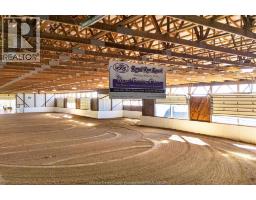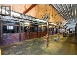 A unique modern ranch on nearly 20 acres with premier equestrian facilities. Royal Run Ranch features an 80 x 200 indoor arena with roll up doors for natural light and airflow, heated 12-stall barn with tack room and automatic waterers, hay barn, 7 fenced paddocks, 3 covered horse shelters, and insulated covered horse walker. Arena offers east-side parking for trailers and equipment. The home blends modern style with farmhouse charm, offering a formal living/dining area, open family room with fireplace, elevated kitchen overlooking paddocks, and 4 fireplaces total. Primary suite on its own floor with walk-in closet, jacuzzi tub, and separate shower. Lower level includes a gym, party room with a wet bar, bonus rooms, and a tanning room. Pond with finished track, mature trees, privacy, and scenic views complete this rare estate. (id:50886)