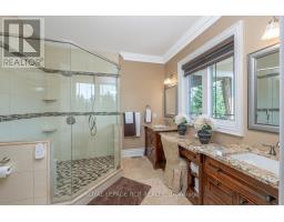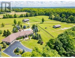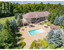 Welcome to this stunning multi-generational country property situated on 44 acres near Acton. Enter the main house through automated electronic front entry gates. Features of the main house include nearly 5000 sq. ft. of luxury living. Maple kitchen w/ granite countertop and backsplash overlooking a large eat-in area with walk-out to large deck overlooking the pool and backyard. Thermador and Miele s/s appliances. Separate and formal open-concept dining room. Open-concept living room with cathedral ceiling and wood burning fireplace. Main floor office. Primary bedroom with walk-in closet 4 pc ensuite and walk-out to deck overlooking the 18 x 36 heated salt water pool with electric pool cover. Main floor laundry and a second laundry in the basement. Huge 9 car attached garage with access to the house and backyard. Fully finished walk-out basement set up as an in-law suite with full kitchen with granite countertop and centre island, large and bright bedroom with 3 pc semi-ensuite bath, , living , dining and games room and tons of storage. Gorgeous backyard with extensive wrought iron fencing. Multiple dining areas. 10 x 10 pool cabana. Approximate 4000 sq. ft. of stone decking with extensive landscaping and stunning gardens. 12 zone, 60 head sprinkler system for front and rear gardens. 30 x 60 Gara Farm Structures barn with 6 System Fencing stalls, separate tack room and large hay storage area. 5 large oak-board paddocks with room for more and a separate driveway to the barn. Lots of room to add an indoor arena if desired. Updates include new geo-thermal furnace in 2022, new pool pump 2024, new pool heater and chimney 2023, Miele dishwasher 2024, Miele induction stove-top and wine fridge 2023. Generator for the full main house. The secondary dwelling features 3 +2 bedrooms. 2.5 baths, partially finished basement. Main floor laundry. Large eat-in kitchen. Separate septic system and drilled well. Propane furnace & central air conditioning. Built in 2018. (id:50886)
