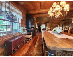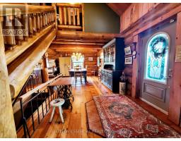 Aesthetically pleasing - from the gorgeous log home to the 53 acres it is perched upon, this property will surely catch your attention. The craftsmanship is stunning the moment you pull in the driveway - picture yourself sitting on the covered front or back porch, whether it is with a hot apple cider in the fall or a lemonade in the summer, calming and peaceful. A log home is considered an environmentally friendly choice, with improved air quality from wood's natural properties, not to mention the feeling of warmth with a greater connection to nature. Welcomed by a custom central staircase, the open concept of the main level will have you planning your house warming party right away! Rustic and stunning from the vaulted ceiling to the pine floors, the kitchen in it's glory with the eye-catching stove, the garden doors leading to the back porch, there is so much to keep your interest. This main level could be set up in many ways - whether you like to be the host of family dinners or picture yourself hiding away in the country only minutes from town. Upstairs are three generous sized bedrooms, the primary bedroom holding a walk-in closet and ensuite with great natural light to get ready in the morning. The main bathroom features a claw foot tub and corner shower - oh that tub! The basement holds even more space - a rec room that lends itself easily to loud game nights or watching a movie cuddled up on the couch. Currently, approximately 20 acres of the land is farmed with corn and the remainder is an abundance of trees - the possibilities are endless! The detached garage is a bonus to what this property already has - but who doesn't want a garage? ...and that willow tree, the kind you picture reading under. Have a look for yourself at this home, be ready to fall in love at first visit! (id:50886)