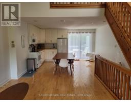 Annual, rental, partially furnished, can provide unfurnished if required. Welcome to 100 Fairway unit 5 in Living Stone Resort, formerly Cranberry Resort. This 3-bedroom, 2-bath, reverse floor plan features hardwood floors throughout, a vaulted ceiling, and a lovely loft with ensuite. The main floor features 1 bedroom with twin beds, 2nd bedroom with a Queen-size bed featuring patio doors (can be used as primary), a private south-facing patio/ four-piece bath, and main floor laundry room. The second level offers a bright, spacious open concept living room, dining room, and fully stocked kitchen/sliding doors to a deck approximately 14 x 8 with BBQ and patio furniture. The living room boasts vaulted ceilings, a gas fireplace, and stairs leading to the third-floor loft with a queen-size bed, a large closet and ensuite. Ceiling fans throughout this home with a fabulous cross breeze. Numbered parking spot at front door and an exterior locker. On-site Golf Course with great summer entertainment on the patio, on-site trails leading to the Georgian Trail System. Moments to a marina and public launch, hiking, shopping, and all this fabulous four-season recreational area has to offer. Rental application, employment letter, and references. UTILITIES NOT INCLUDED. (id:50886)