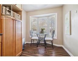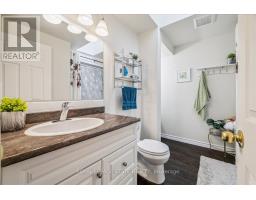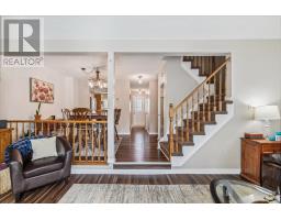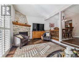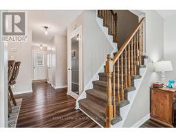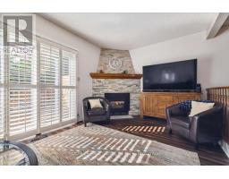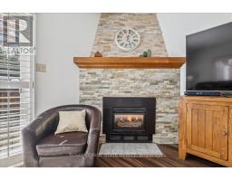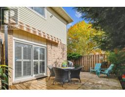 Beautiful turn-key end-unit townhouse in a sought-after Stoney Creek location! This quiet, well-maintained complex is conveniently close to the QEW, schools, and public transit. Start your mornings with coffee by the large front window of your bright eat-in kitchen, featuring ample counter and storage space plus stainless steel appliances. The open-concept living and dining area is perfect for entertaining, highlighted by a stunning gas fireplace with a floor-to-ceiling stone surround and wood mantle. Open the California shutters to fill the space with natural light from your private, landscaped backyard with exterior access. Step out onto the deck to BBQ and relax under the automatic retractable awning. Upstairs, you'll find three spacious bedrooms and a renovated main bathroom with a skylight and makeup counter. The finished basement offers a large rec room, laundry area, and plenty of storage. The single-car garage includes inside entry and direct access to the back deck. Condo fees cover exterior property maintenance, insurance, parking, and water! (id:50886)