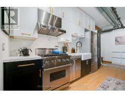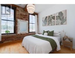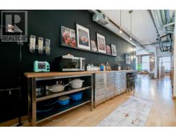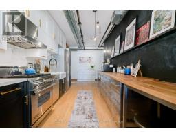 Welcome to Suite 5 of the Boiler Factory Lofts, a boutique heritage conversion with only 11 units. This is a rare opportunity to own a piece of history with exceptional value potential, thanks to the upcoming Ontario Line subway and redesigned park across the street. This true hard loft with low monthly fees offers 890-sqft featuring exposed brick & beams, 10-ft ceilings, oversized windows flooded with natural light, and a 30-ft statement chalkboard wall. The fully upgraded kitchen boasts ceiling-high cabinets and features a Viking professional gas range and hood, Blomberg fridge, Grohe semi-professional faucet, and Franke fireclay farmhouse sink. Thoughtful layout includes spacious bedroom that can easily accommodate a king-sized bed, formal dining area, two closets, ensuite storage unit, and laundry closet. Experience total Zen in your own 243-sqft. private rooftop terrace with striking skyline views, a true urban oasis for relaxing or entertaining. Convenient parking on Britain Street with direct rear access to the building. With a walk score of 98, you are steps to St. Lawrence Market, Distillery District, Financial Core, Eaton Centre, multiple parks, and have quick access to the Gardiner and DVP. (id:50886)