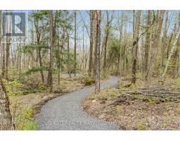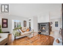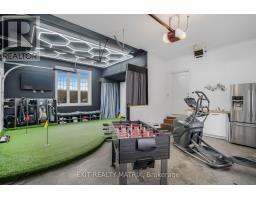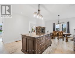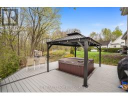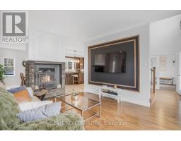 Welcome to this exceptional property, situated within a private and exclusive gated community in Hawkesbury, conveniently located across from the renowned Hawkesbury Golf & Curling Club. This executive residence offers refined living and features a breathtaking 30ft waterfall on its grounds, providing a serene and enchanting atmosphere. The spacious open-concept main floor includes a chefs kitchen equipped with granite countertops, cherry wood cabinetry, and a large center island, ideal for both entertaining and culinary endeavors. A striking double-sided wood-burning fireplace enhances the warmth and charm of the living and dining areas, creating an inviting ambiance. A dedicated laundry room and a stylish partial bathroom are also conveniently located on this level. The upper level comprises three well-appointed bedrooms, two of which provide direct access to a private balcony, perfect for enjoying morning coffee or evening sunsets. The luxurious primary suite features a spa-inspired ensuite with a deep, jetted tub, an elegant tiled shower, and an oversized walk-in closet. The fully finished basement expands the living space with two additional bedrooms, including a custom professionally built home studio and office, suitable for content creators or remote professionals. Furthermore, the basement includes a custom entertainment bar area with a 72 bottle capacity. The garage offers a professional golf simulator with a 20' x 24' four-hole putting green for golf enthusiasts. The exterior of the property offers a backyard oasis featuring a covered porch leading to a relaxing hot tub under a metal gazebo, meticulously manicured landscaping, a scenic path to the impressive Rideau Falls located on the property, and a cozy firepit area, providing a private retreat for all seasons. Over 3500 sq ft of finished living space. This exceptional offering combines executive comfort, natural beauty, and a prime location. (id:50886)